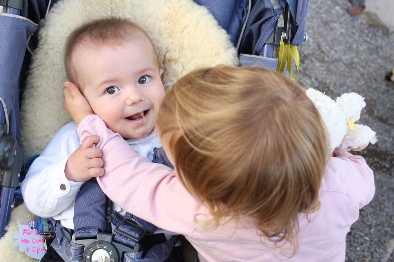 Heute war schon wieder ein Fest, nämlich die Taufe von Luis. Es war ganz warm, darum konnten wir sogar draussen essen. Und ich musste die Sonnenbrille aufsetzen, so sonnig war es.